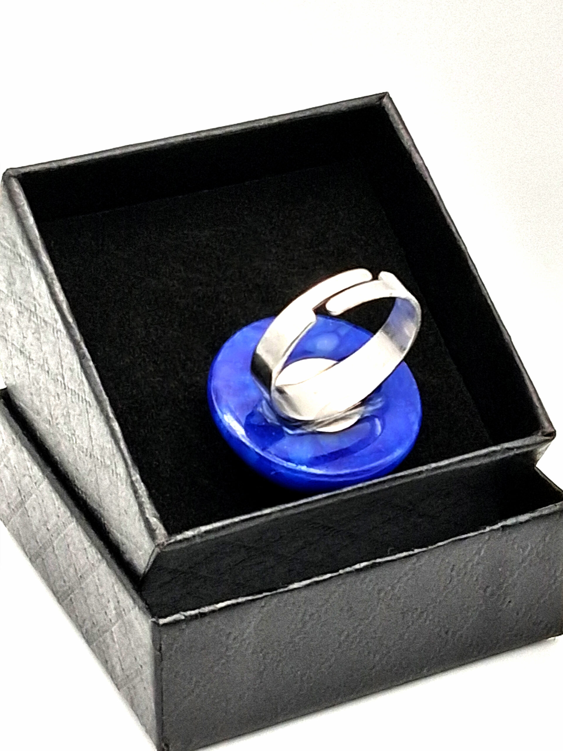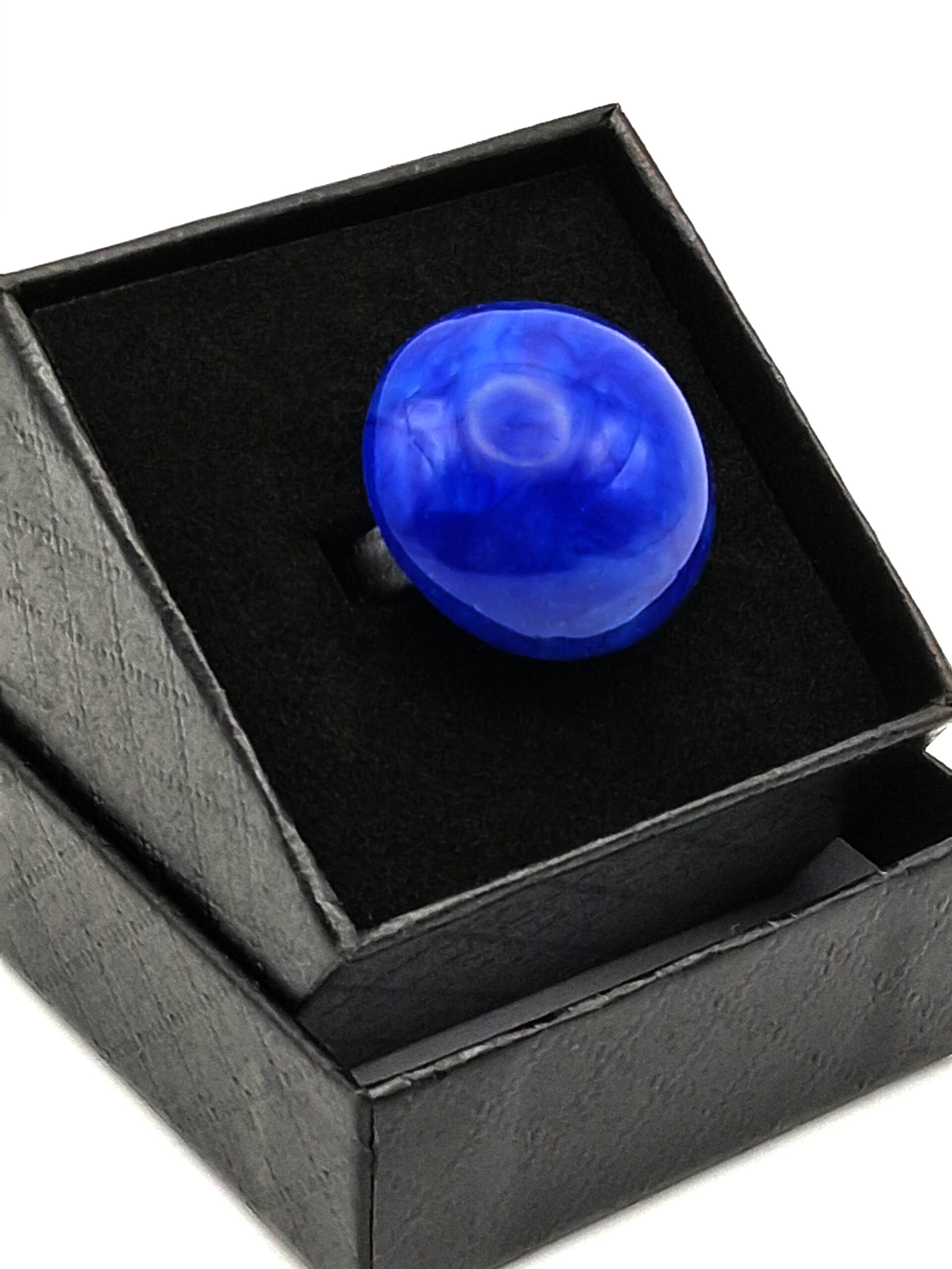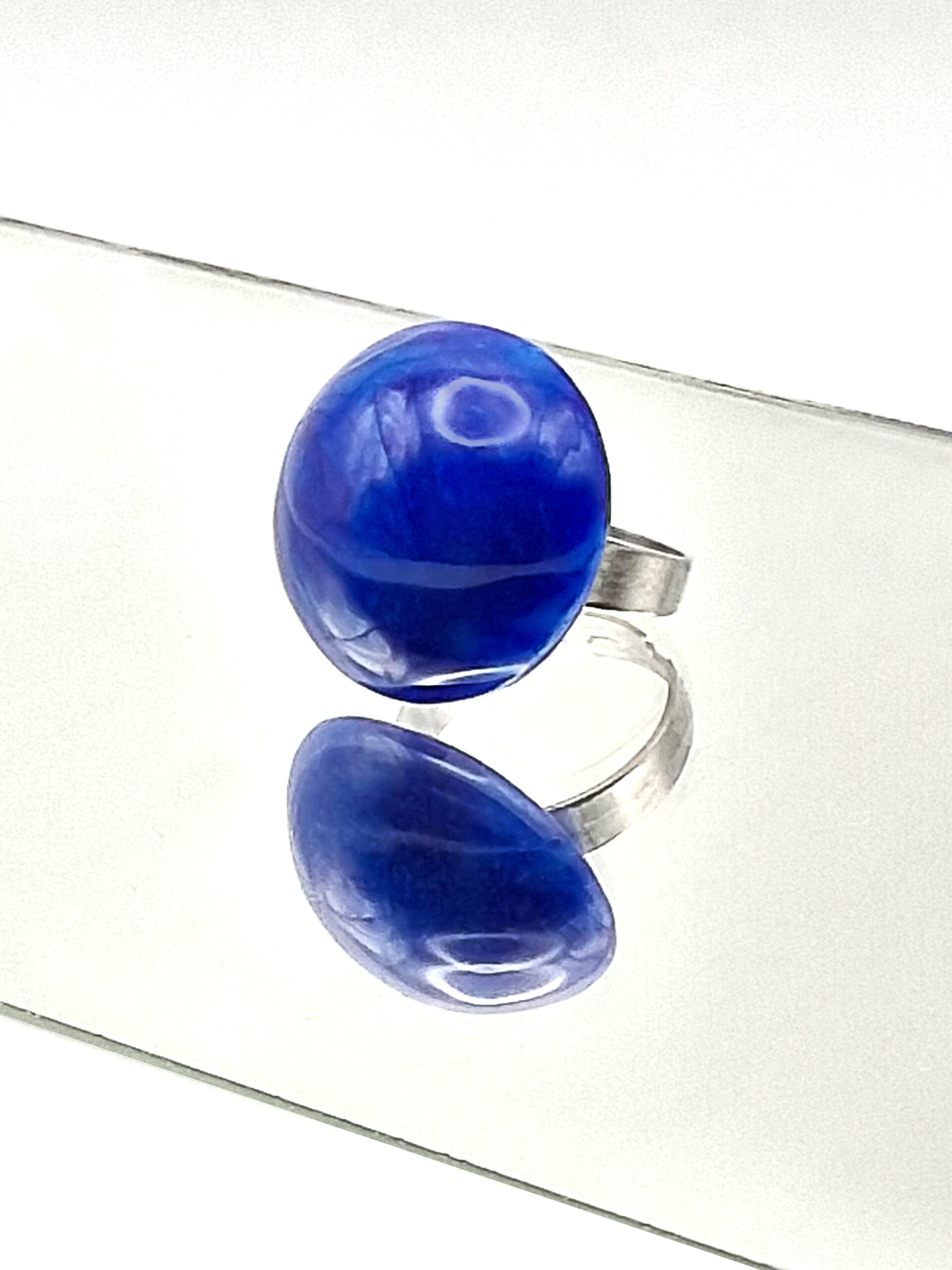 Une bague faite d’une jolie perle ronde, de belle taille, en argile polymère couleur bleu. Monture en acier inoxydable hypoallergénique ajustable.