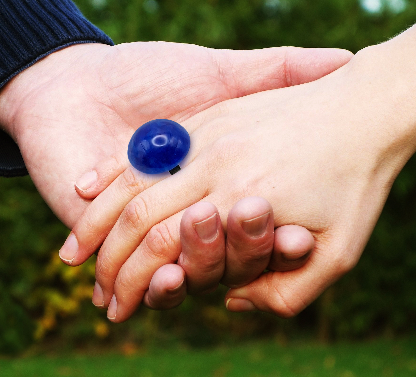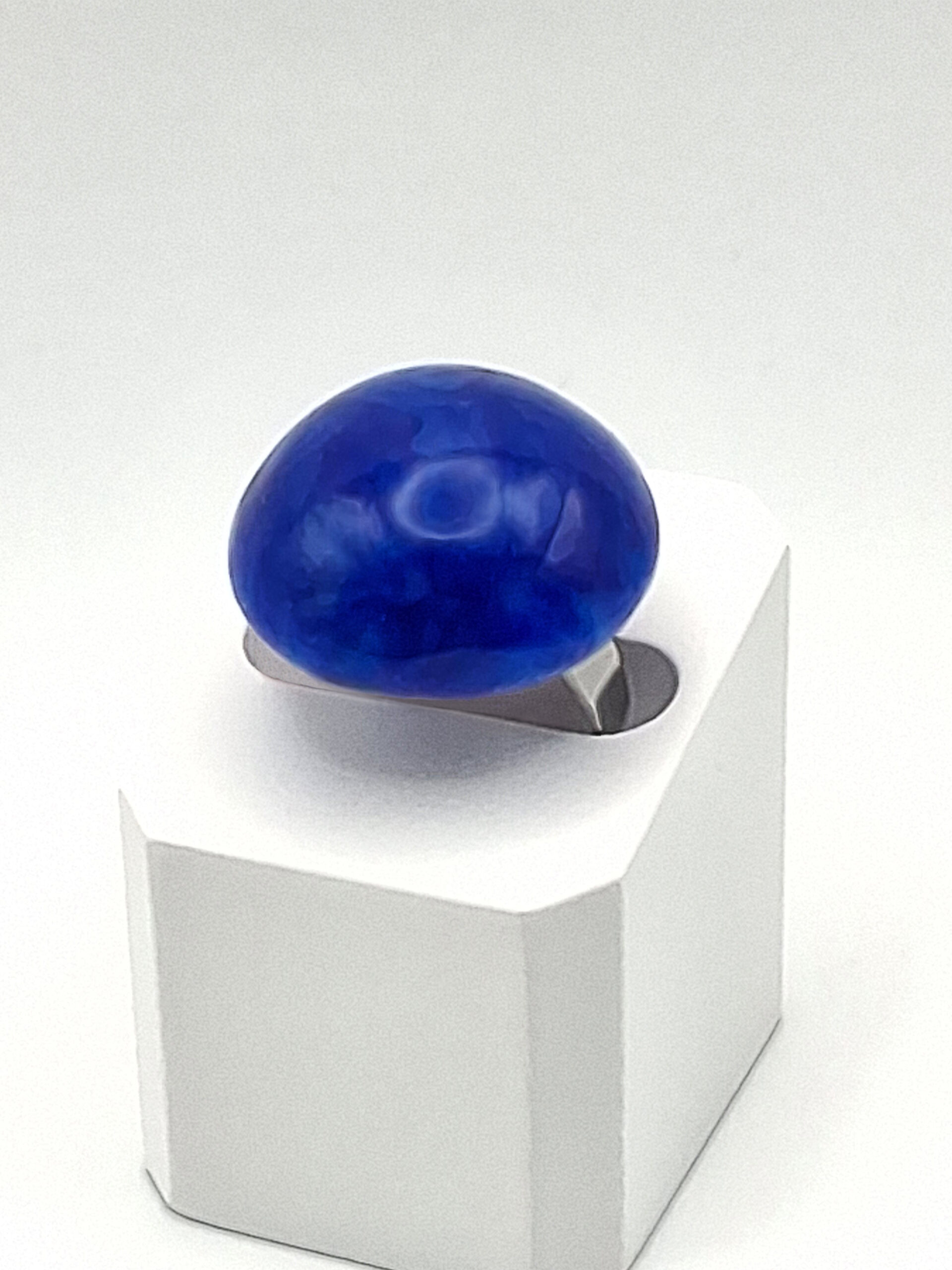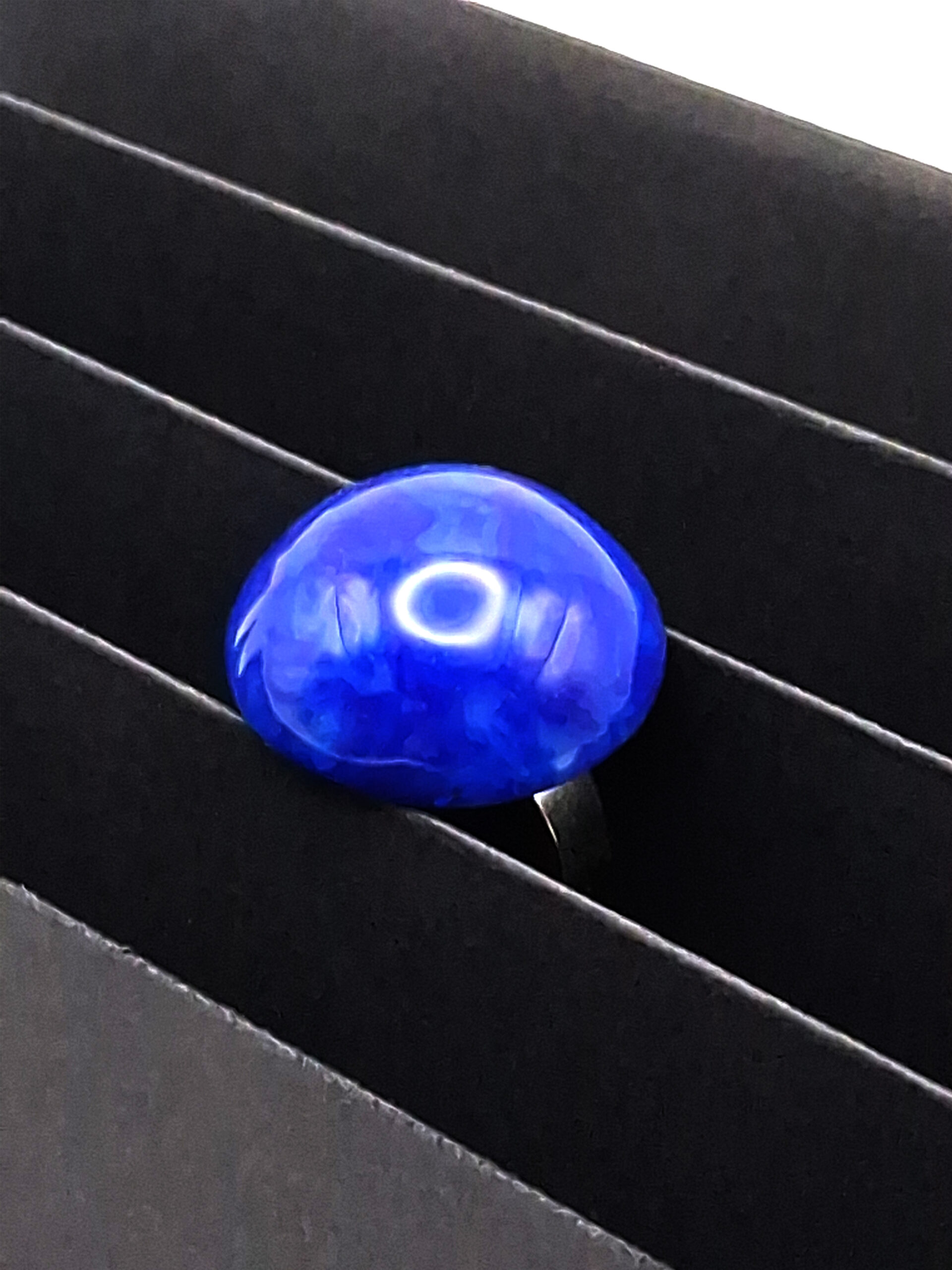 Une bague faite d’une jolie perle ronde, de belle taille, en argile polymère couleur bleu. Monture en acier inoxydable hypoallergénique ajustable.
