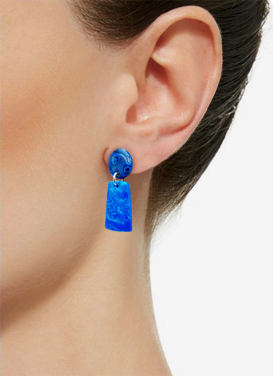 Des boucles d’oreille faites d’un assemblage d’une jolies perles trapèze motifs bleu roi et de d’une petite perle ronde. Clous d’oreilles en acier inoxydable hypoallergénique.