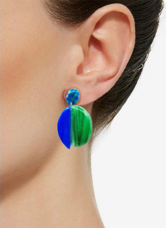 Des boucles d’oreille faites d’un assemblage de 2 jolies perles rondes motifs damier bleu roi et vert marbré translucentes. Clous d’oreilles en acier inoxydable hypoallergénique.
