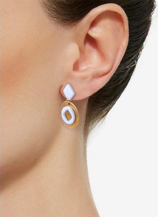 Des boucles d’oreille faites d’un assemblage de 2 jolies perles blanches carrées et d’un disque doré en acier inoxydable. Clous d’oreilles en acier inoxydable hypoallergénique.