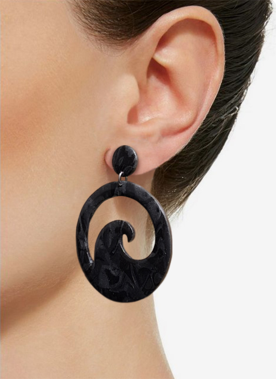 Des boucles d’oreille de belle taille motif noir et gris pailleté. Clous d’oreilles en acier inoxydable hypoallergénique.