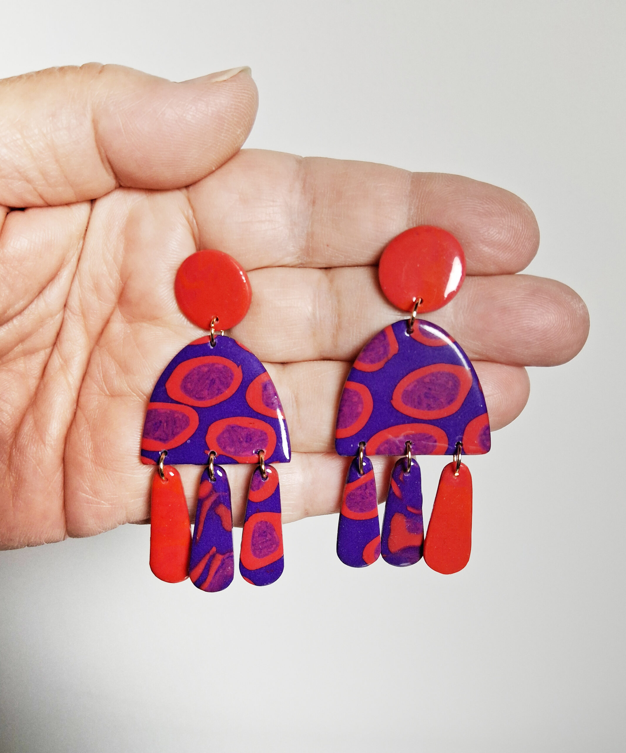 • Poids : 7 grammes la paire de boucle. Malgré leur taille, l’argile polymère permet de conserver une grande légèreté pour un port agréable tout au long de la journée.
