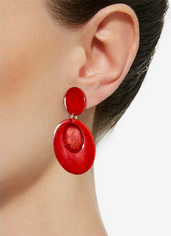 • La partie pendante : Une forme ronde rouge avec au centre une parti transparente et pailleté.
