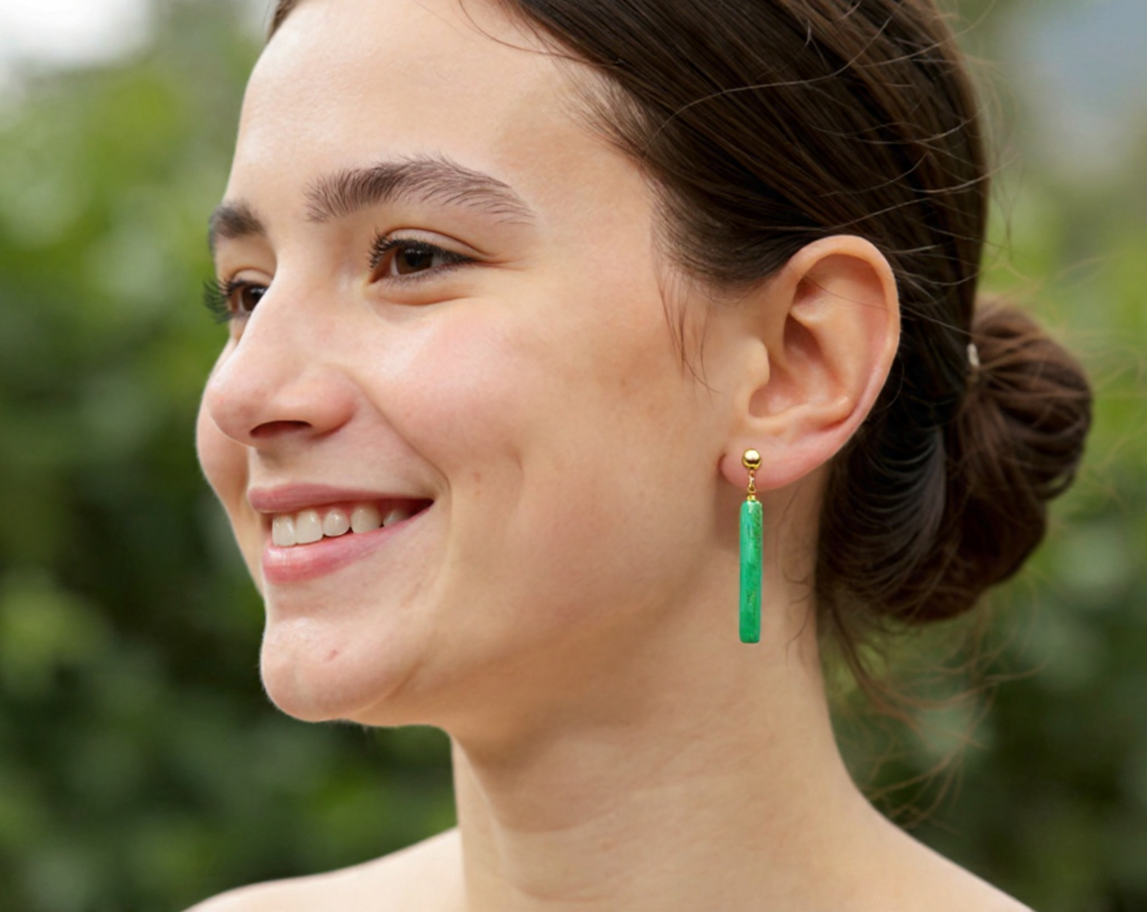 Chaque pièce est unique et façonnée à la main, présentant de subtiles variations qui témoignent de leur fabrication artisanale. Leur design minimaliste en forme de barre allongée et leur couleur vibrante en font l’accessoire parfait pour rehausser une tenue de journée comme une robe de soirée.