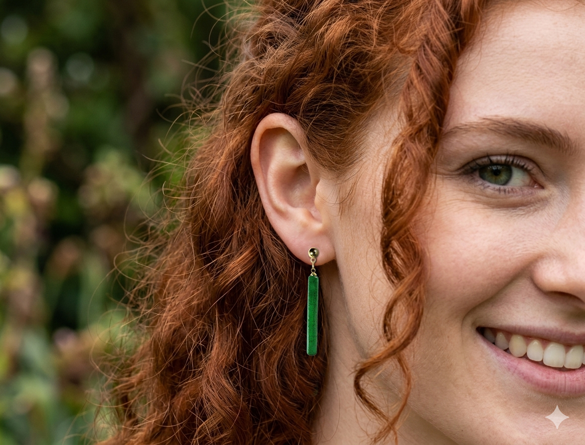 Chaque pièce est unique et façonnée à la main, présentant de subtiles variations qui témoignent de leur fabrication artisanale. Leur design minimaliste en forme de barre allongée et leur couleur vibrante en font l’accessoire parfait pour rehausser une tenue de journée comme une robe de soirée.