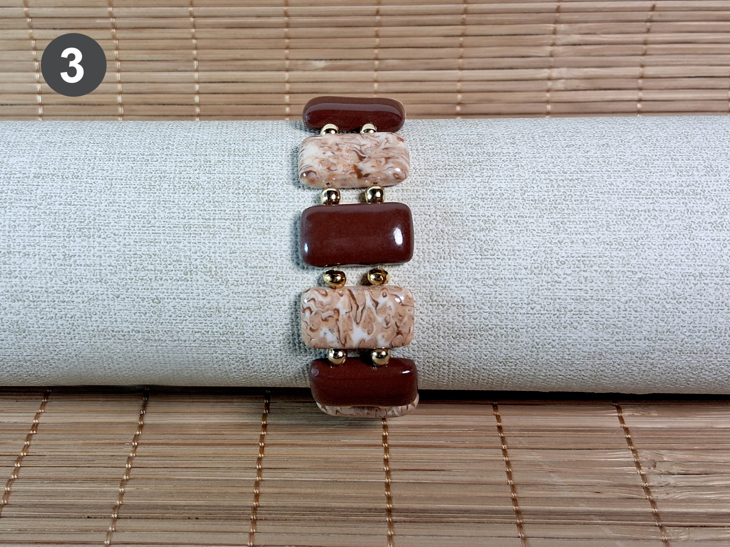 Ajoutez une touche de couleur et d’originalité à votre poignet avec ce magnifique bracelet fait à la main. Chaque perle rectangulaire en argile polymère est unique, arborant un superbe mélange de couleurs profondes et vibrantes, créant un effet marbré subtil et élégant. Des perles intercalaires en acier inoxydable viennent illuminer l’ensemble et apporter une finition chic.