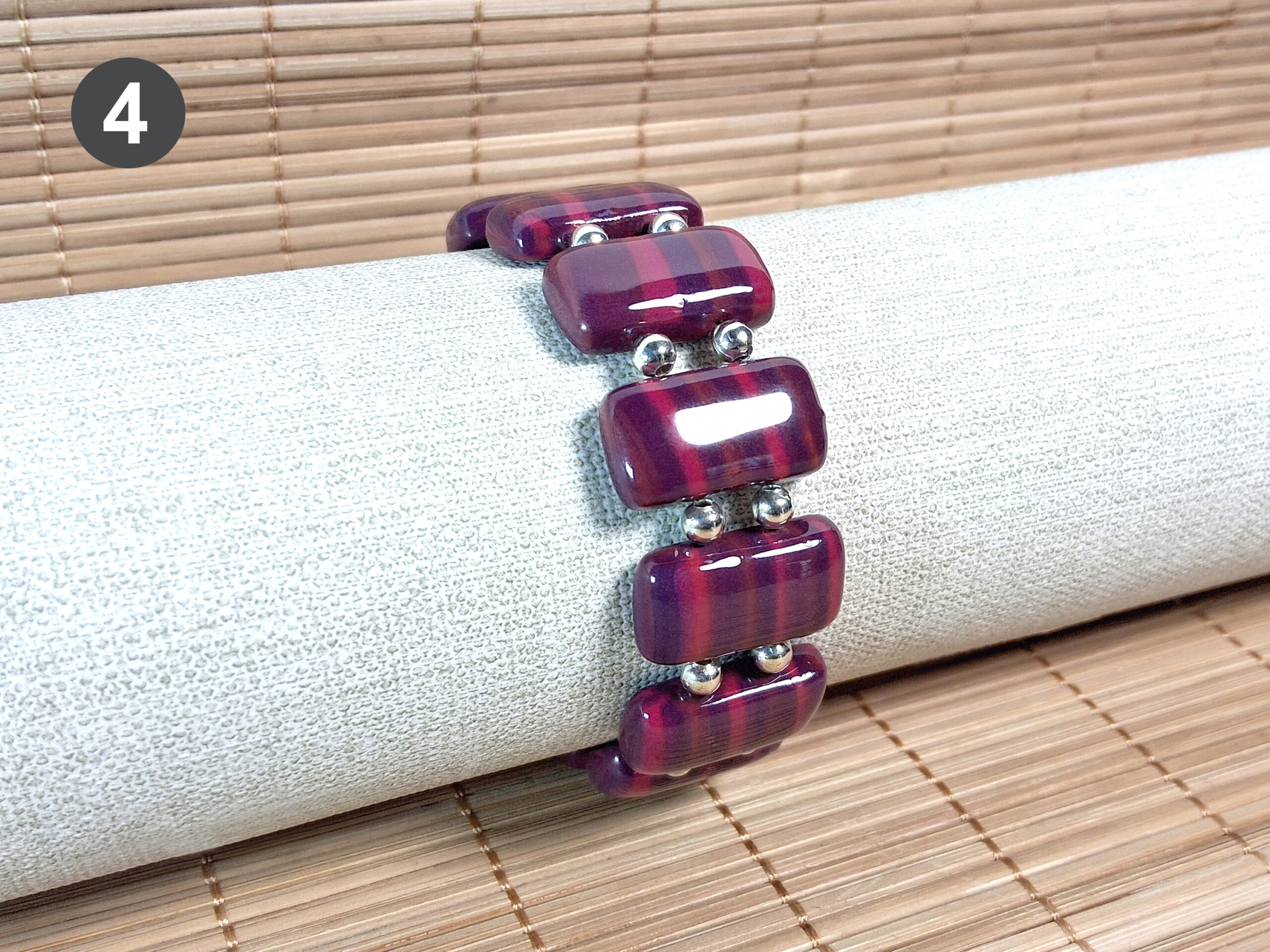 Ajoutez une touche de couleur et d’originalité à votre poignet avec ce magnifique bracelet fait à la main. Chaque perle rectangulaire en argile polymère est unique, arborant un superbe mélange de couleurs profondes et vibrantes, créant un effet marbré subtil et élégant. Des perles intercalaires en acier inoxydable viennent illuminer l’ensemble et apporter une finition chic.